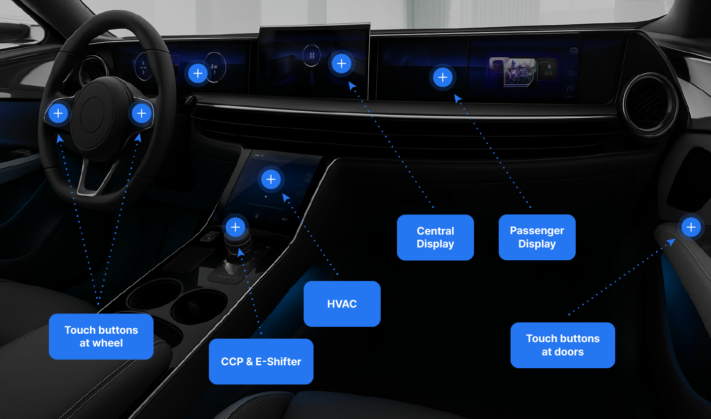 Automotive Touch Buttons, CCP Button, Central Display, Passenger Display, E-Shift, CID (Central Infotainment Display)